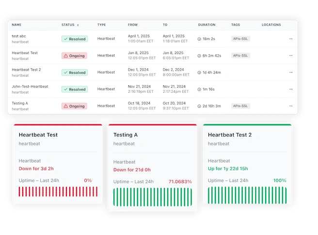 Ensure your critical processes and scheduled tasks (crons) are always running smoothly with Heartbeat Monitoring. Here’s what makes it essential: